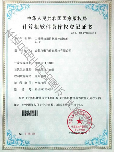 鹰米讲解器系统荣誉证书